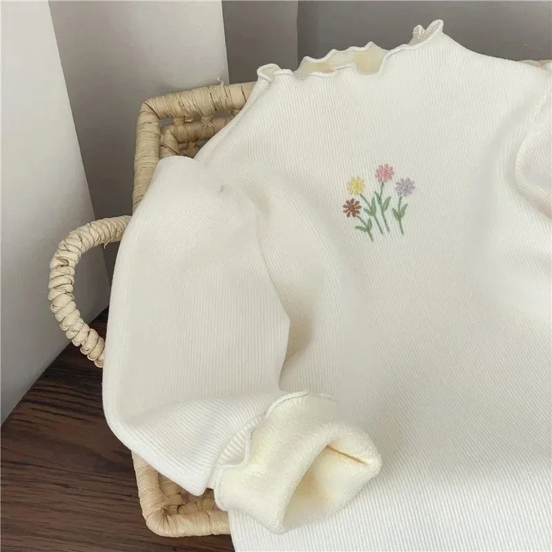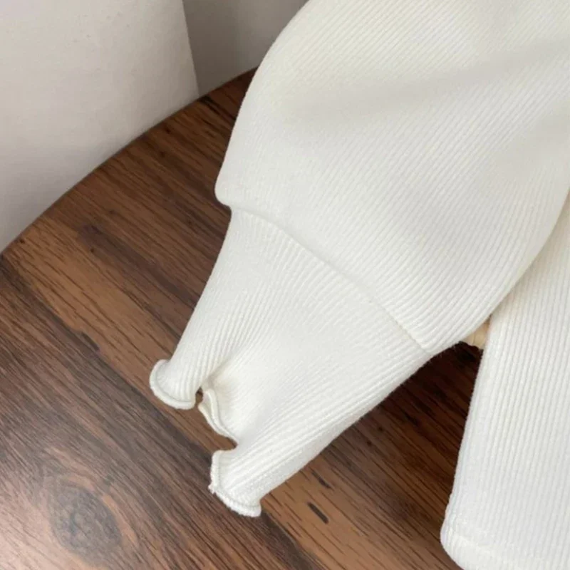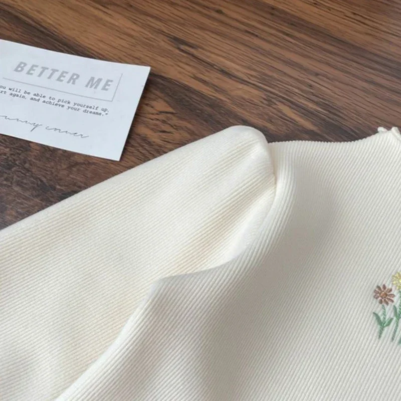 Description: Wrapped in warmth and cuteness 🧶! This puffy-sleeve embroidered sweater keeps your baby comfy and fashionable all season long 💕🌨️.
