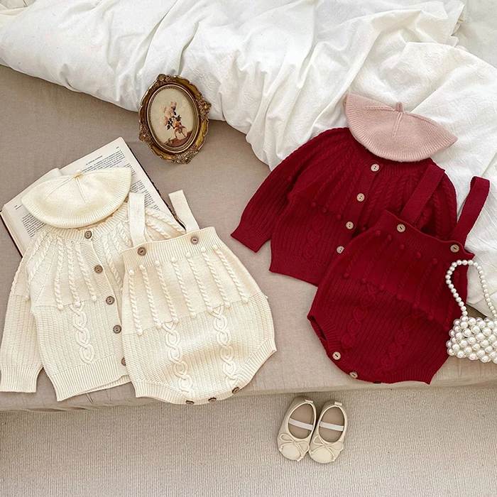 Dreamy comfort for cooler days 🌤️ Solid knit cardigan & romper combo — perfect for cuddles and playtime 🤍👶