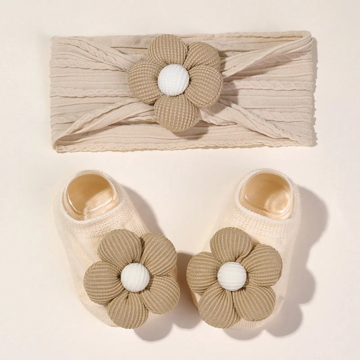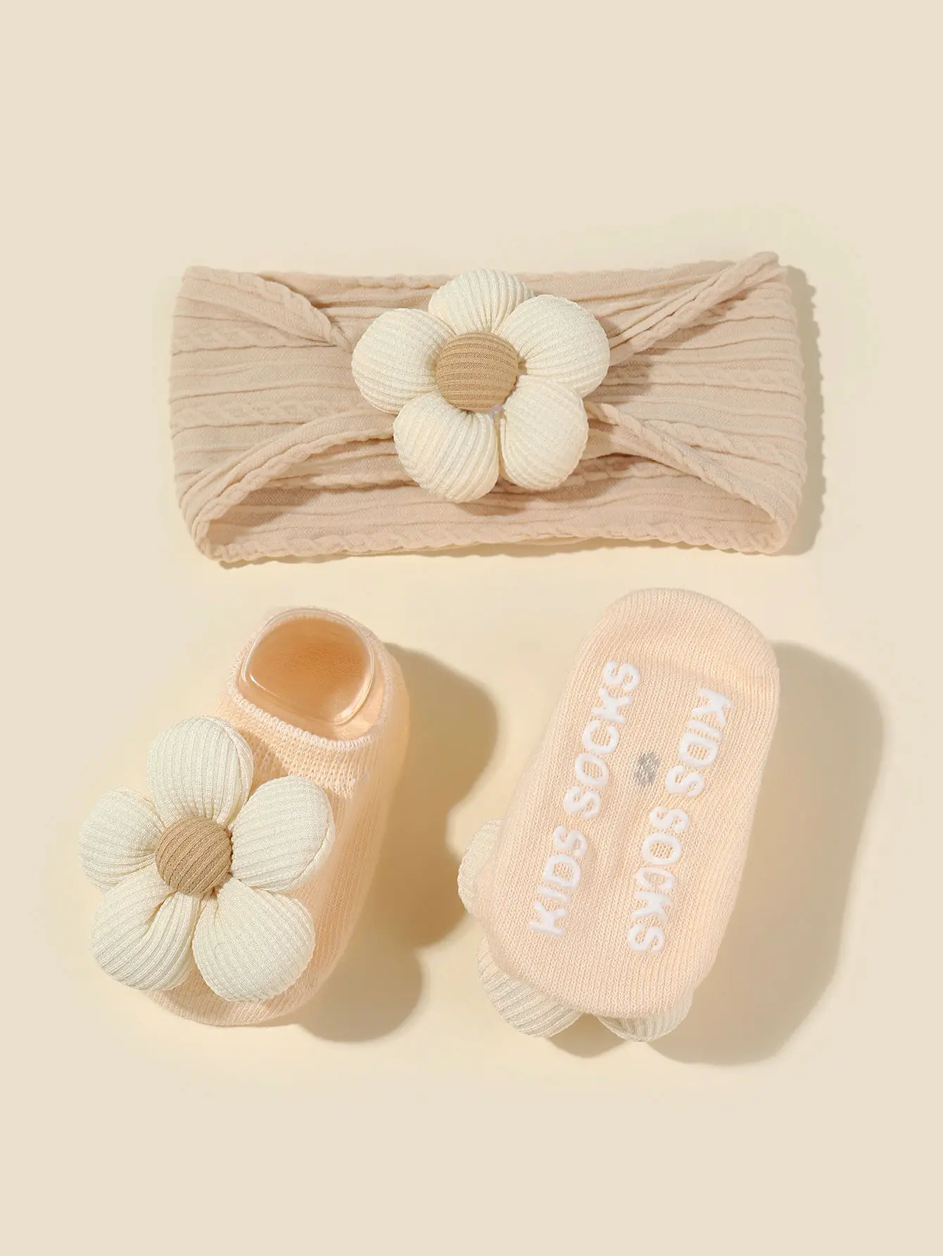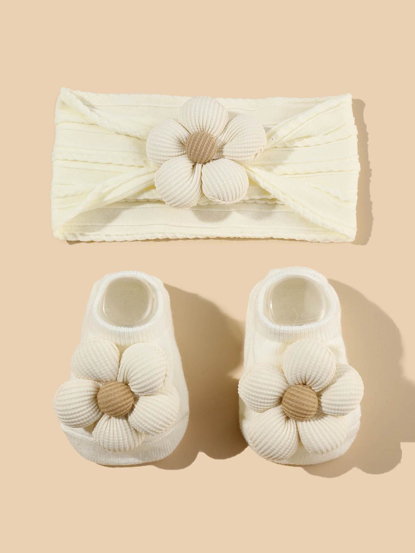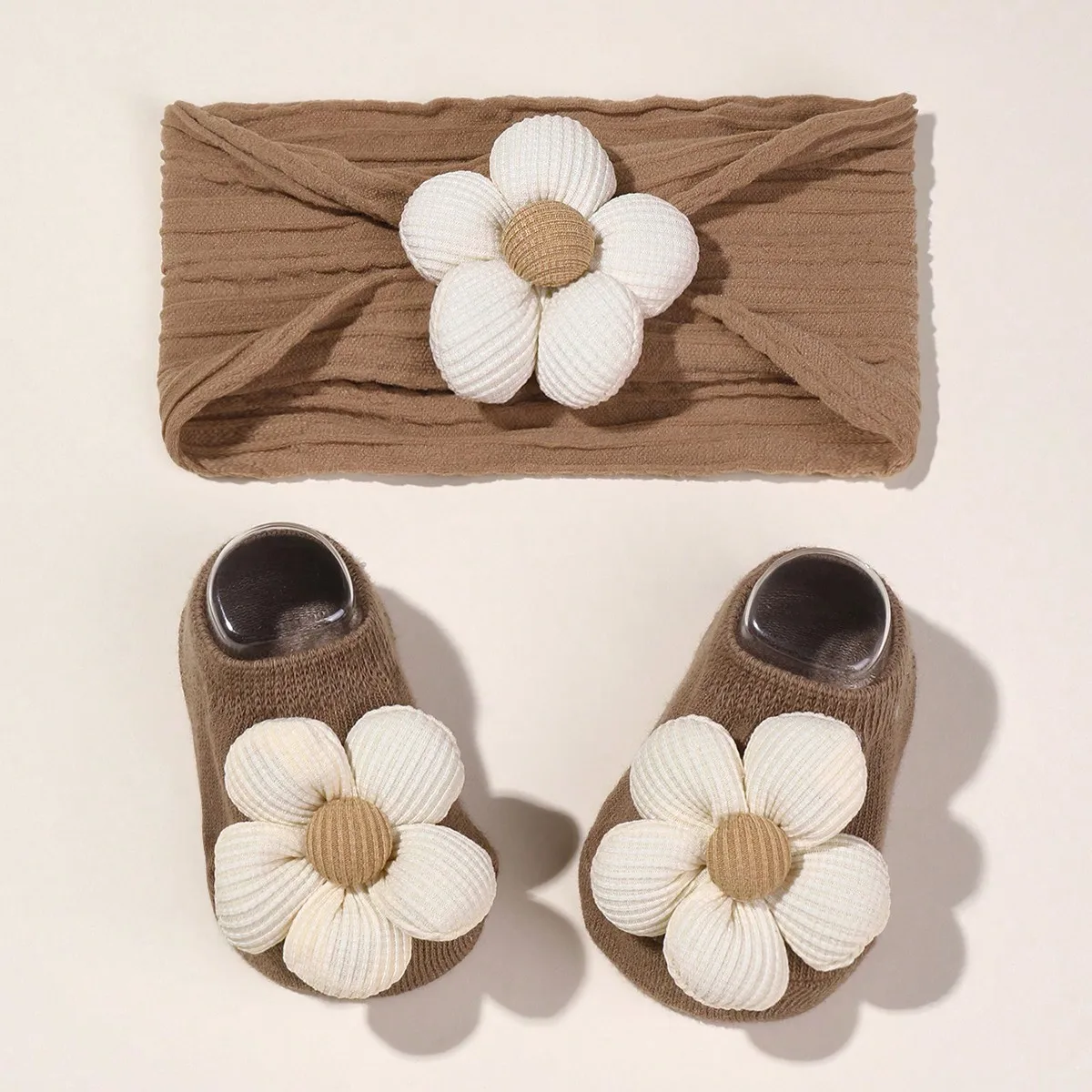 2 Pcs/Set Baby Girls Headband Socks Set Newborn Girls Cute Flowers Toddler Princess Sock Autumn Infant Hair Accessories Gift