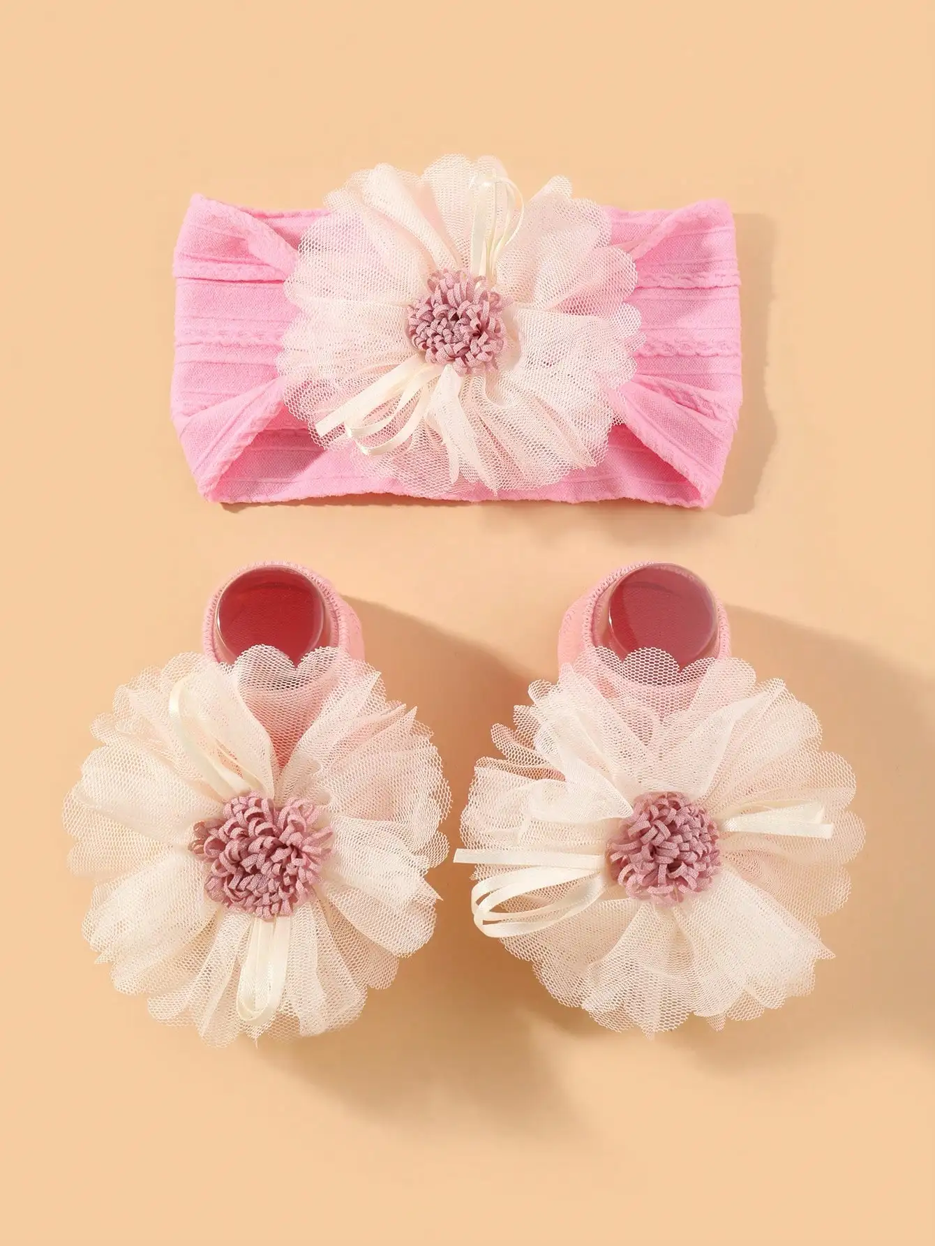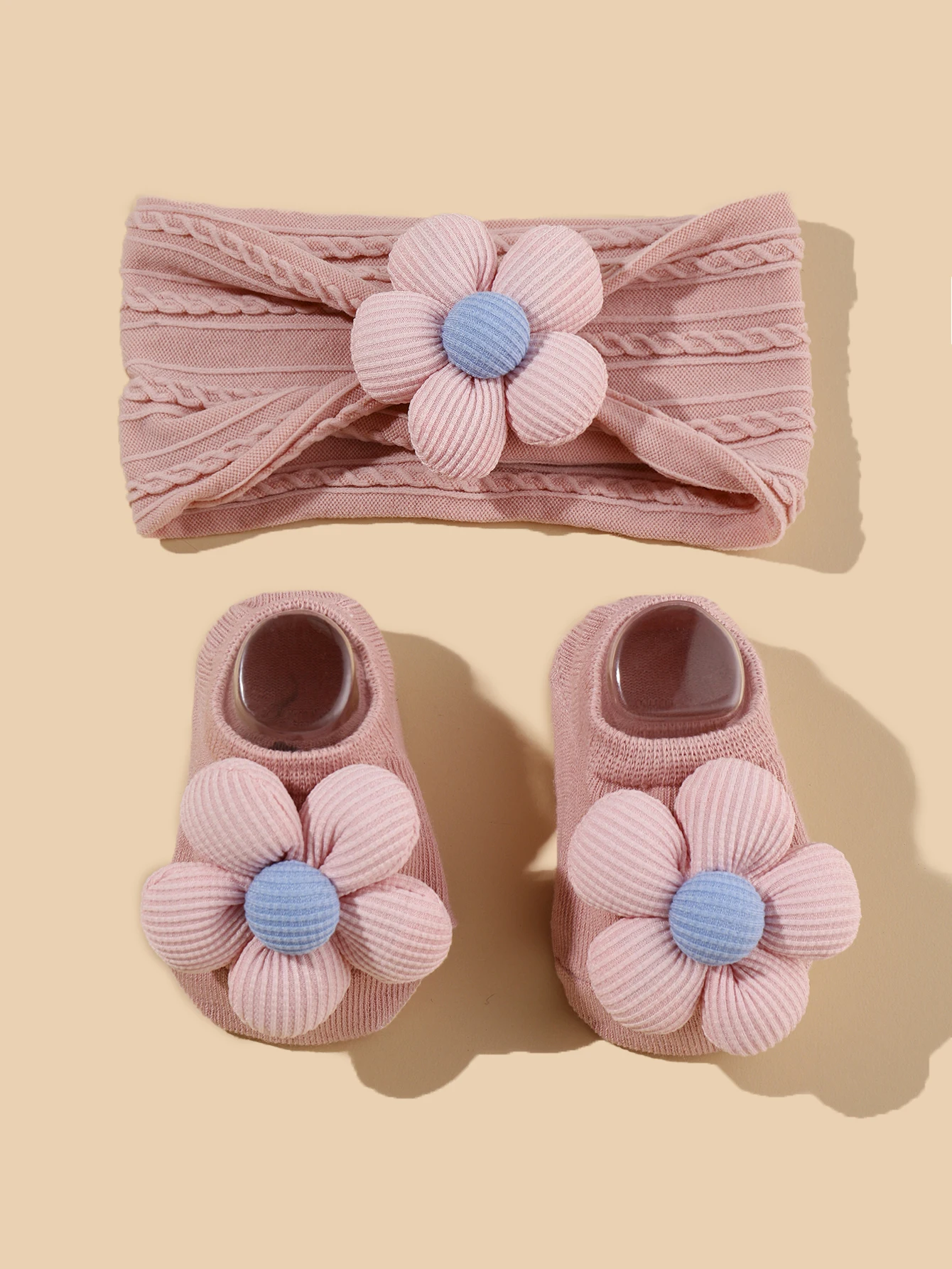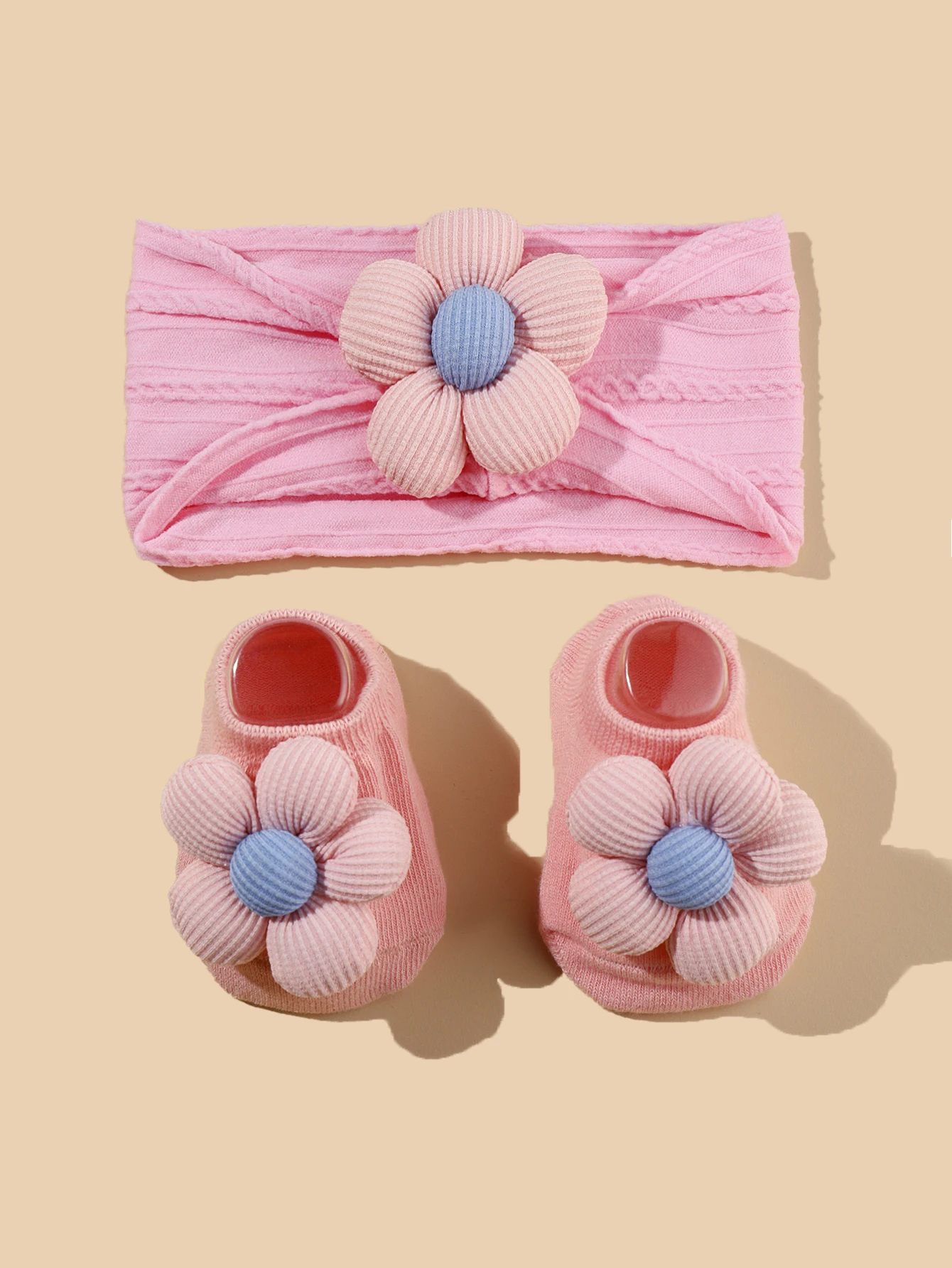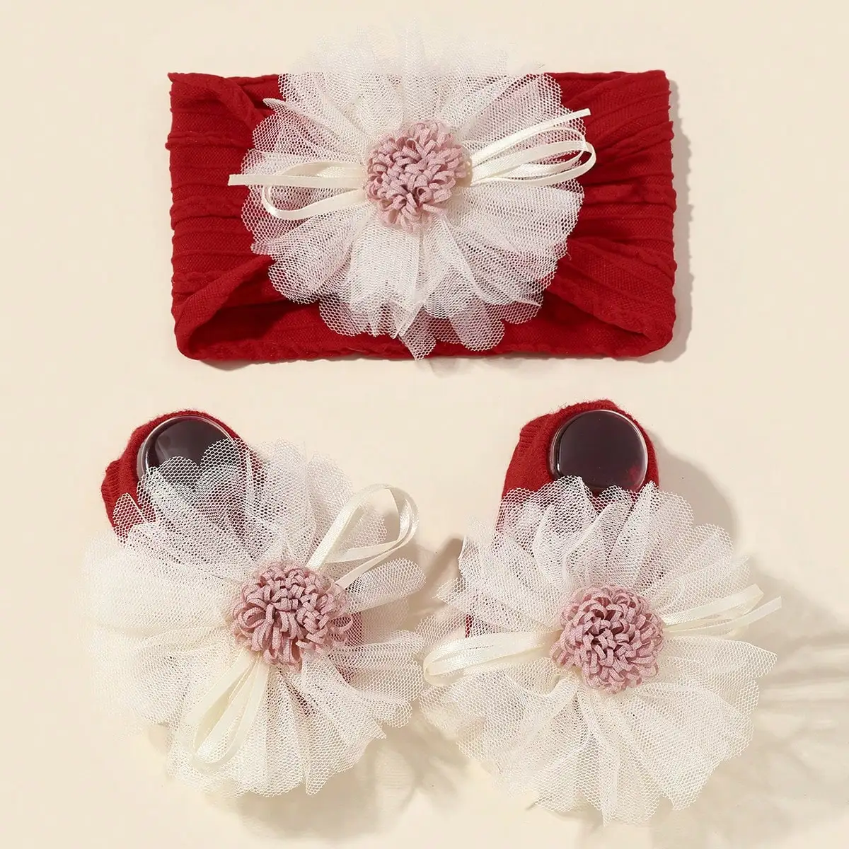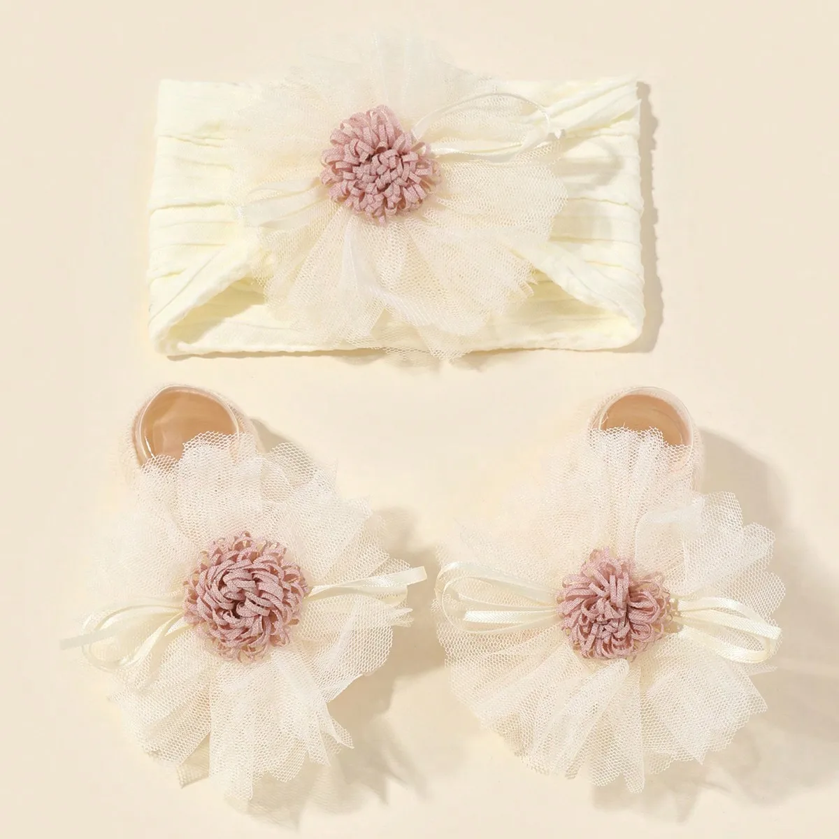 2 Pcs/Set Baby Girls Headband Socks Set Newborn Girls Cute Flowers Toddler Princess Sock Autumn Infant Hair Accessories Gift