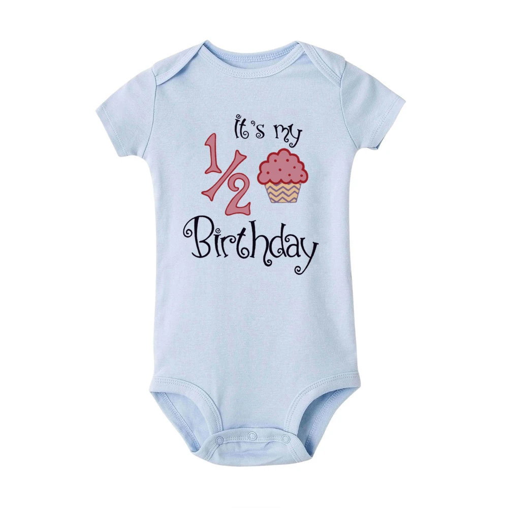 Ice Cream 1/2 Birthday print baby bodysuit Summer Newborn Clothes Toddler Jumpsuit Boys Girls Birthday Party Short Sleeve romper