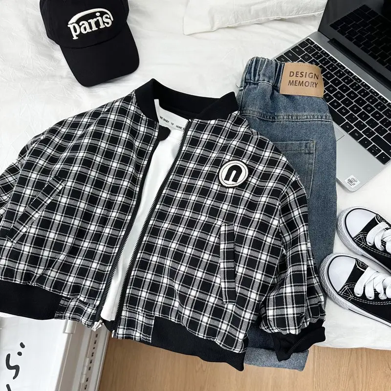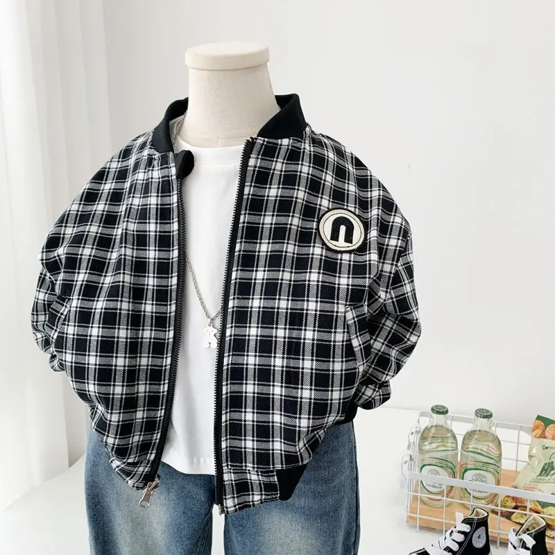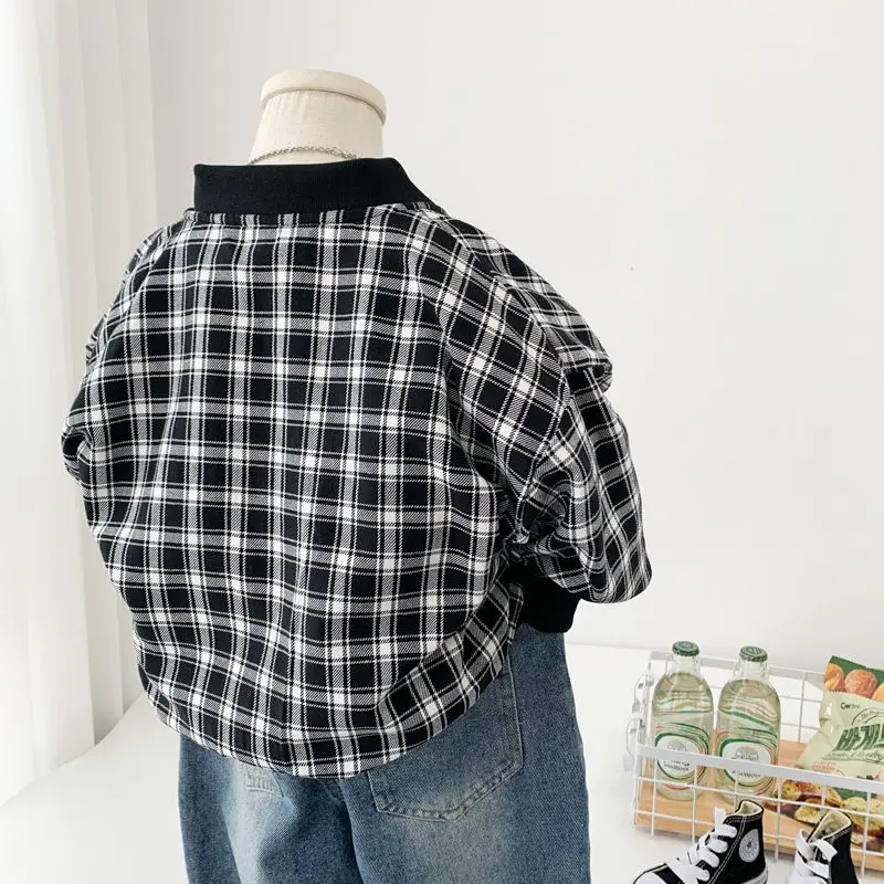 Twice the style, double the fun! The Boys’ Two-Sided Baseball Jacket brings cool versatility to your child’s wardrobe. Designed for spring and autumn, this reversible coat features a trendy plaid pattern on one side and a classic solid color on the other, giving two fashionable looks in one.