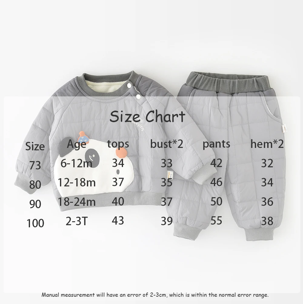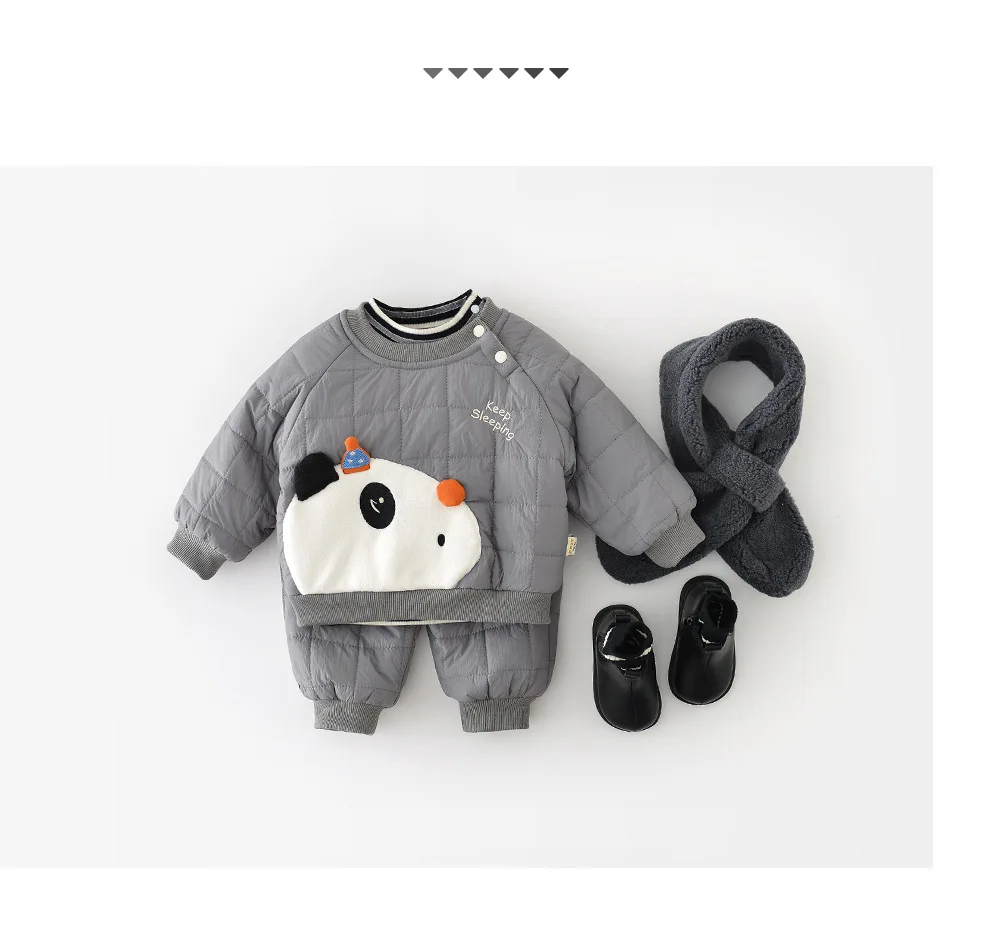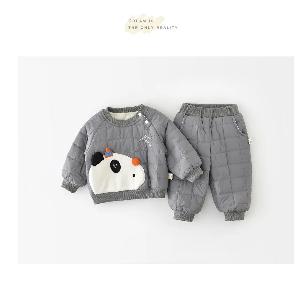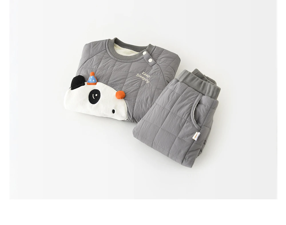 Description: Cute, cozy, and oh-so-warm š! This fleece-padded 2PCS outfit keeps your little one comfy all winter ā perfect for playful panda lovers āļøāØ.