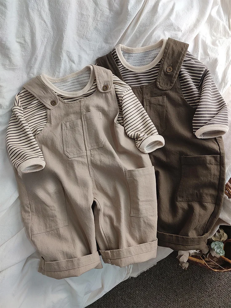 Dress your little man in effortless style with our Autumn Strappy Pants — a perfect blend of comfort and Korean-inspired charm. Made from soft, breathable fabric with adjustable suspenders and practical pockets, these pants are ideal for everyday adventures or special outings.