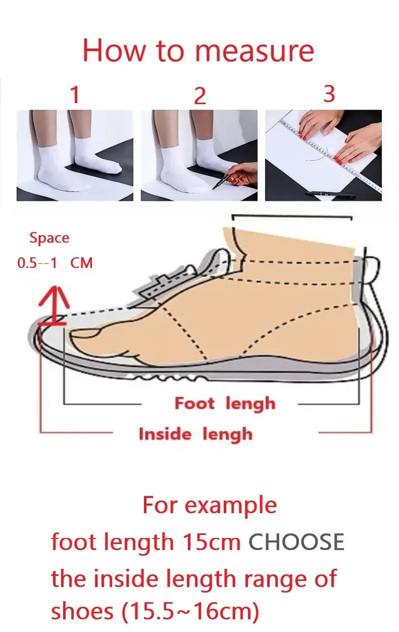 <1>Â Â Size = Inside Shoe Length = Foot Length + (0.5~1 cm)