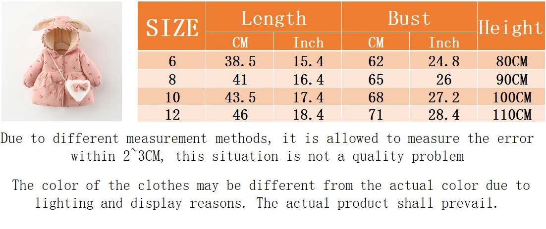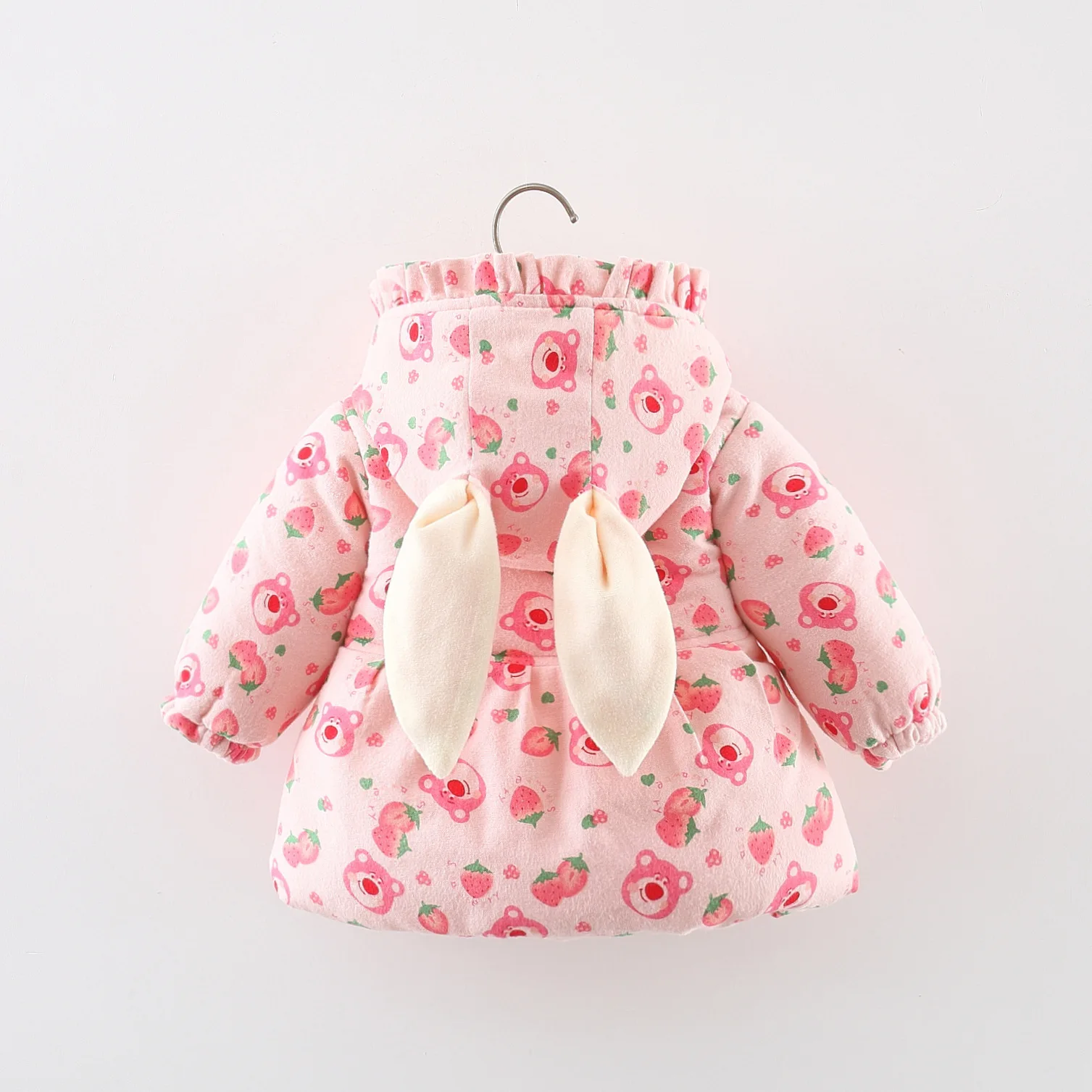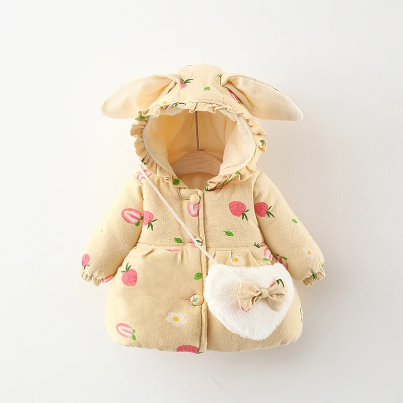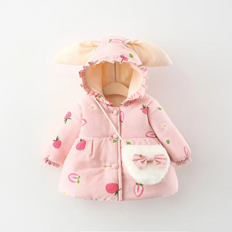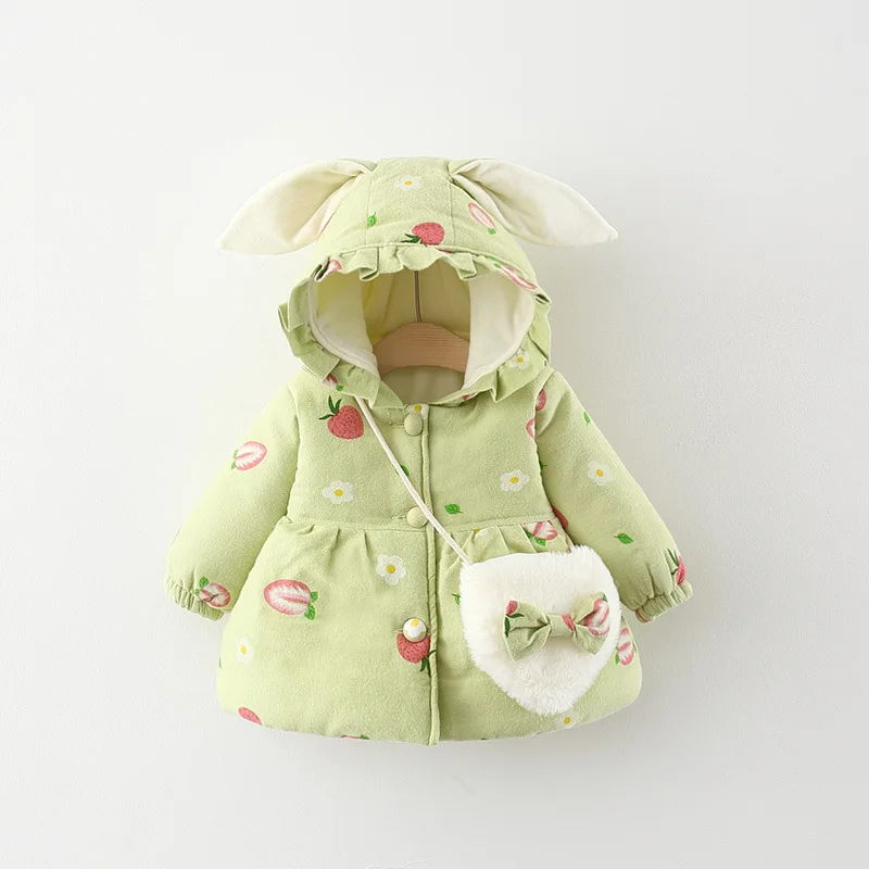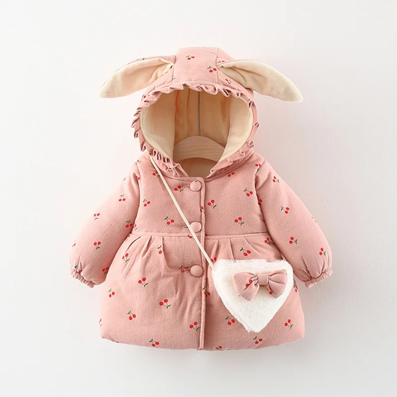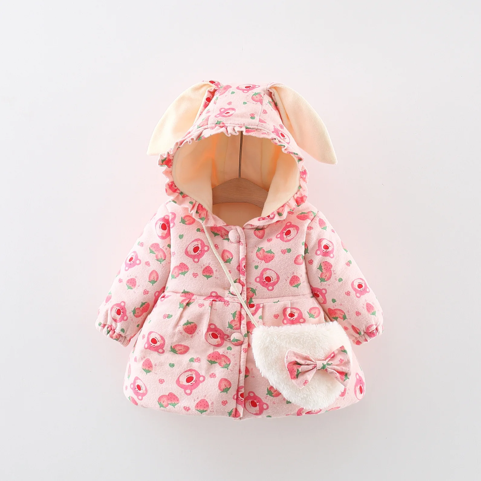 New Cute Children's Clothing, Solid Color Printed Girls' Cotton Jacket, Rabbit Ear Hooded Bag Gift